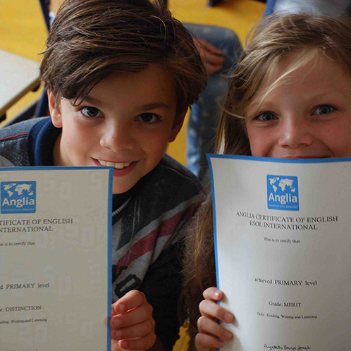 Weet je dat ik al vanaf groep 4 Anglia certificaten ‘spaar’? Onze school doet elk jaar mee aan dit internationale examen. Dan maak je een Engelse toets op je eigen niveau en die wordt dan helemaal naar Engeland gestuurd om daar te worden nagekeken!